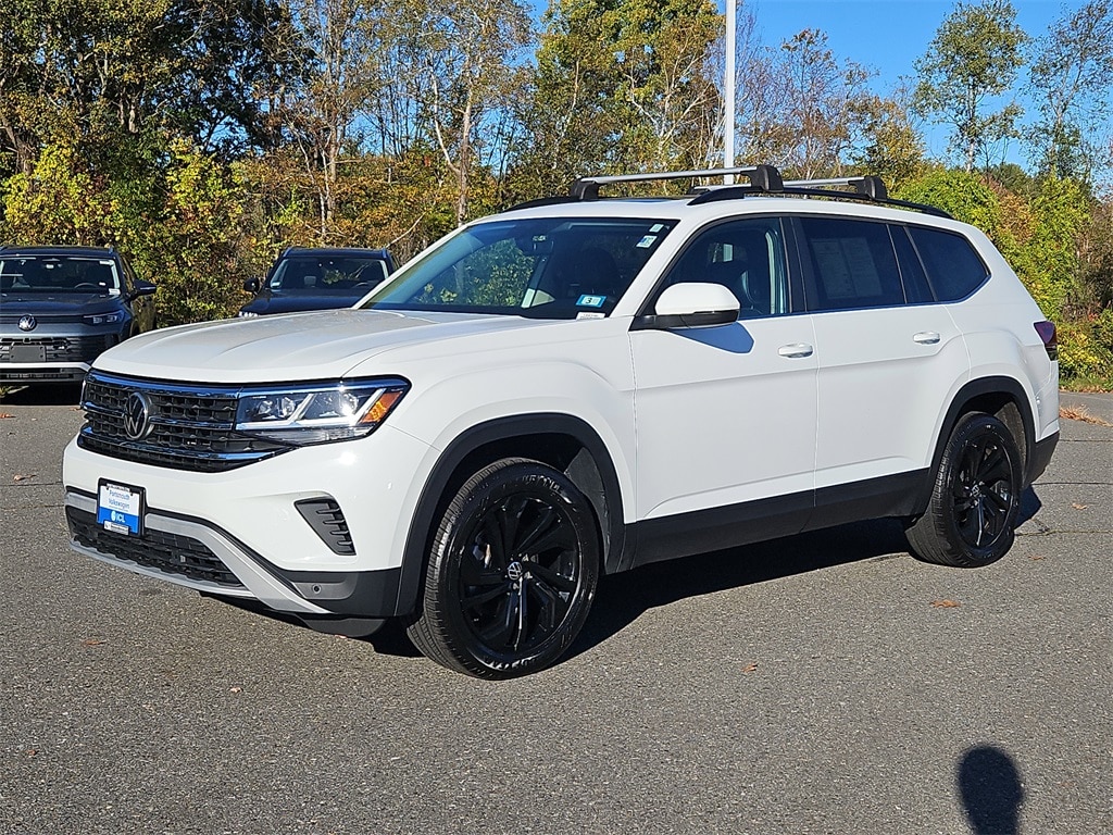 Certified. Pure White 2022 Volkswagen Atlas 3.6L V6 SE w/Technology AWD 8-Speed Automatic with Tiptronic 3.6L VR6 Carfax 1 Owner! Accident Free!, 4-Wheel Disc Brakes, 6 Speakers, ABS brakes, Air Conditioning, AM/FM radio: SiriusXM with 360L, Atlas MDO Package - Bench Seats, Auto-Dimming Rear-View Mirror, Automatic temperature control, Black Wheel Package, Brake assist, Bumperdillo Protection Plate for Rear Bumper, Dual front impact airbags, Dual front side impact airbags, Electronic Stability Control, Exterior Parking Camera Rear, Four wheel independent suspension, Heated Comfort Front Bucket Seats, Leather Shift Knob, Power driver seat, Power Liftgate, Power steering, Power Tilting & Sliding Panoramic Sunroof, Privacy Cover, Radio data system, Radio: MIB3 Composition Media w/8" Touchscreen, Rain sensing wipers, Rear window defroster, Rubber Mats Kit - Bench Seats, Speed-sensing steering, Standard Suspension, Steering wheel mounted audio controls, Traction control, Trailer Hitch Extras, Trunk Liner w/VW CarGo Blocks, Wheels: 20" x 8J 5-Spoke Black Painted Alloy.